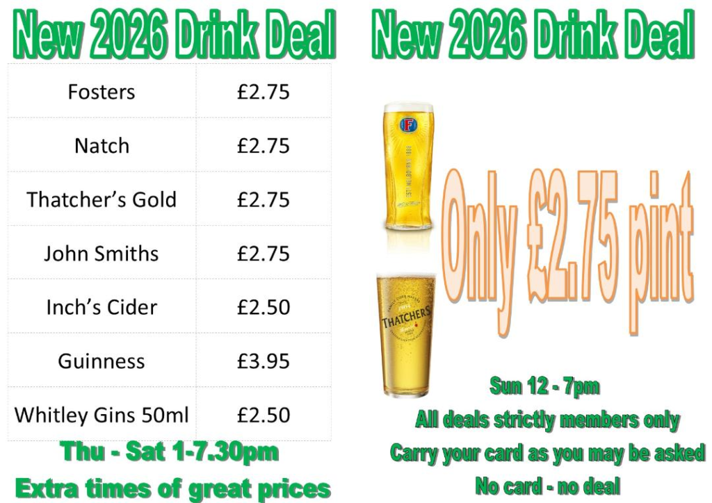 Always worth checking out our massive deals at the club. At a time when everything seems so expensive we aim to supply great value promotions to make your money go further. Let your friends know.